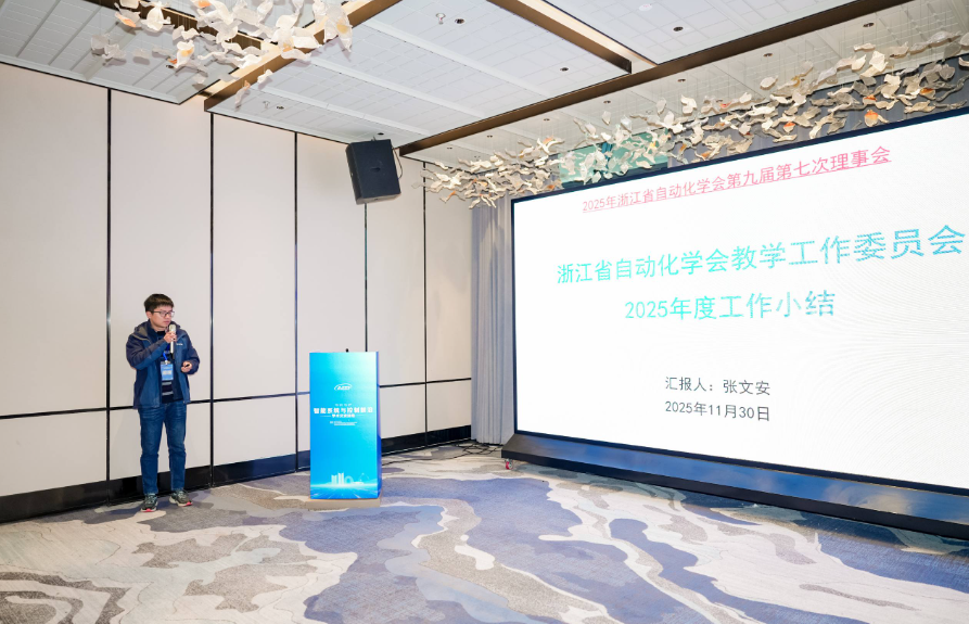 2025年11月30日,浙江省自动化学会第九届七次理事会暨二届五次事会在湖州顺利召开会议由学会秘书长谢磊主持。